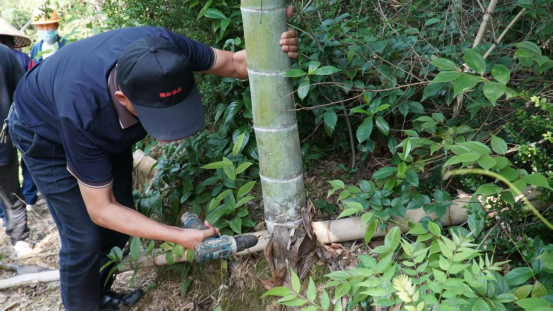 在竹子低位进行竹腔注射 邓宇婷 摄
