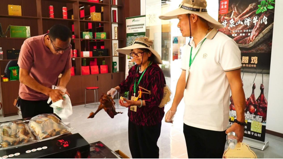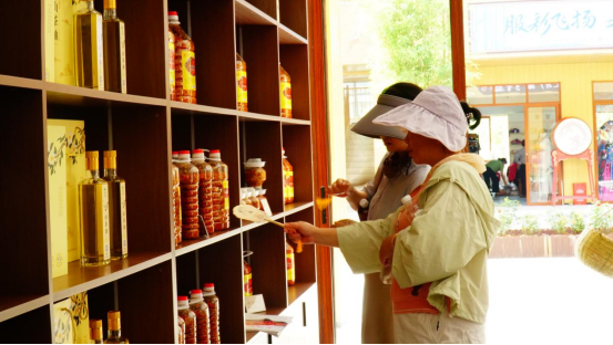 上午九点,“避暑康养 就来桃江”2025年湖南省乡村文化旅游节(益阳桃江)暨“紫辰杯”竹乡美食文化大晒开幕式在桃花江竹海景区举行,景区人头攒动,灰山港农特产品专营店内迎来来自四面八方的客人。