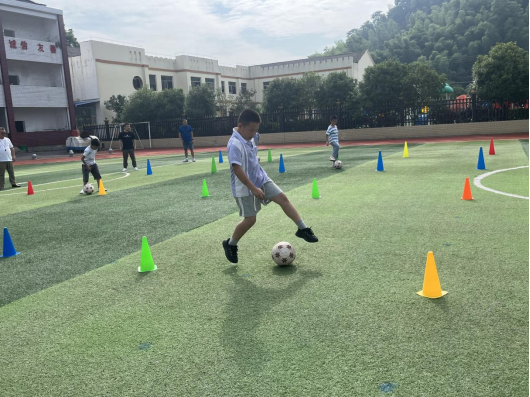 赛场上,有选手因足球“溜”出赛道急得原地打转,也有女生以教科书般的脚内侧推球动作,稳扎稳打摘下小组最优成绩,计时裁判们紧握秒表,对漏杆选手按规则加时5秒的严谨执裁,让比赛既充满童趣又不失竞技精神。