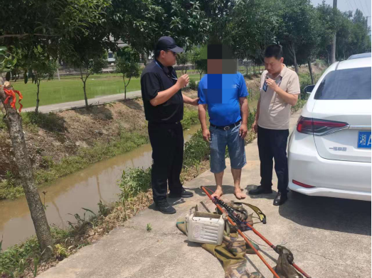 经现场核实,发现一名村民正手持电鱼设备在河中非法作业。电打鱼行为对水域生态环境的破坏性极大,它不仅会直接导致大量鱼类死亡,还会破坏水生生物的生存环境,影响整个水域生态系统的平衡与稳定。