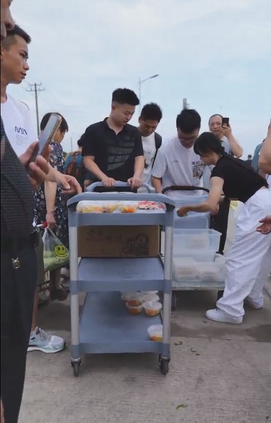 6月15日,县城“想恰就恰美食城”携手爱心志愿者带上热气腾腾的饺子和清爽解暑的排骨玉米汤,为县城张家码头露天菜市场的零担摊主们送上夏日的关怀。