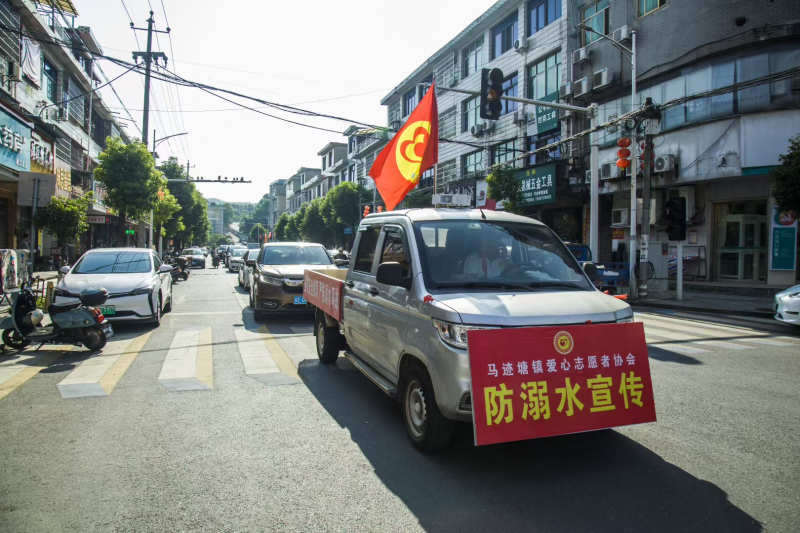 7月15日,马迹塘镇爱心志愿者协会组织开展全镇“防溺水”安全宣传。