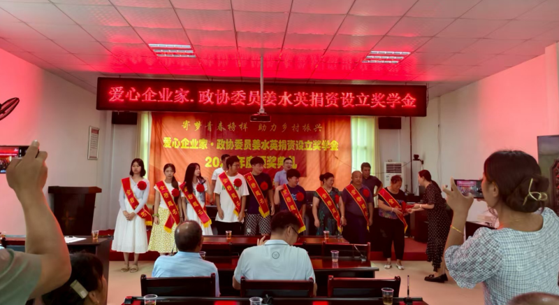教育是姜水英最关注的领域之一。2023年10月,她向松木塘镇中心学校捐赠3万元用于购置餐桌;2024年,她在关山口村乡村振兴活动中为大学新生发放助学金万余元;2025年,她先后为关山口小学捐赠216套课桌,为关山口中学捐赠老师办公电脑8台、打印机2台。