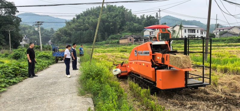 9月8日上午,在鸬鹚渡镇龙塘湾村的中稻稻田里,一台崭新的秸秆打捆机正开足马力作业。轰鸣声中,散落田间的秸秆被迅速压实、捆扎成整齐草方,随后运往村里的食用菌种植基地。在这里,秸秆经粉碎加工后,“变身”为种植赤松茸的优质基料,成为推动村级集体经济壮大的重要资源。
