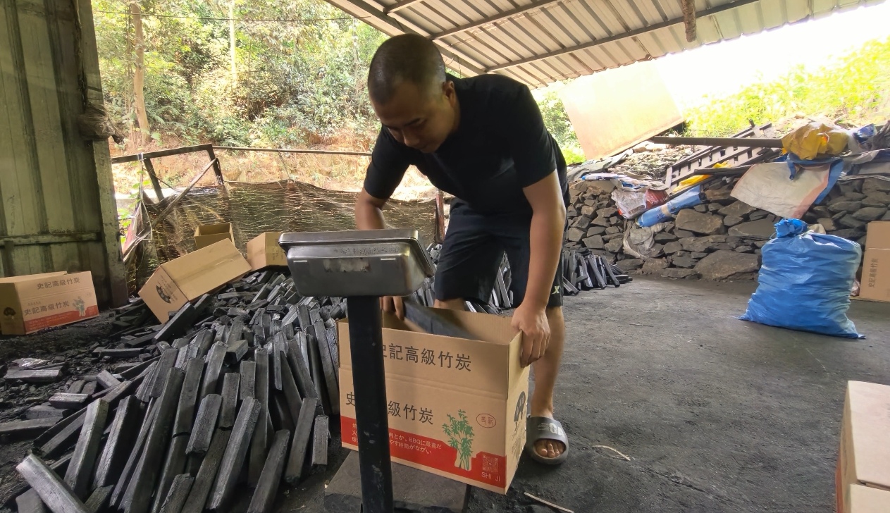 尹鹏飞正在打包环保炭 胡卫红 摄