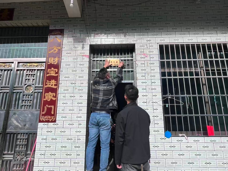慰问小组工作人员手捧入伍通知书,肩扛“光荣之家”牌匾,逐户走访新兵家庭。在每一户家门前,工作人员都认真细致地选择合适位置,庄重地将光荣牌安装到位。沉甸甸的牌匾承载着对军人奉献的崇高敬意和对军属支持的诚挚感谢。