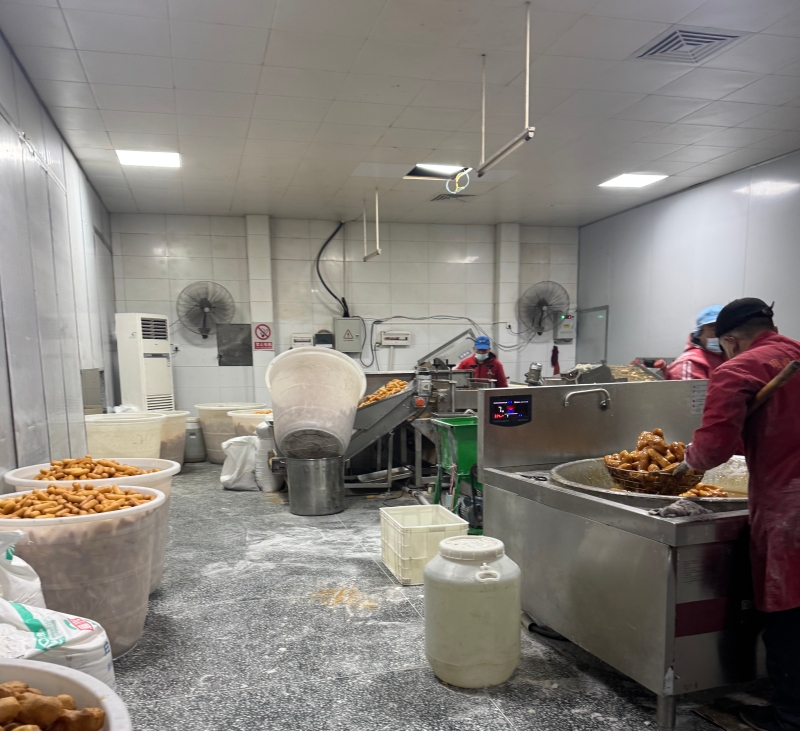 随后,调研组走进湖南易平食品有限公司生产车间,20000平方米的车间内,机器平稳运转,身着统一工作服的员工在各自岗位上,有条不紊地进行食品加工。公司主要负责生产加工雪枣、麻枣、麻花等传统特色食品的生产与加工。凭借对品质的严苛坚守与独特风味的匠心传承,其产品不仅畅销全国,近年来逐步开拓海外市场,公司扎根乡土,有效解决村附近百余人的就业问题,实现了村民“家门口增收”的朴素愿望。