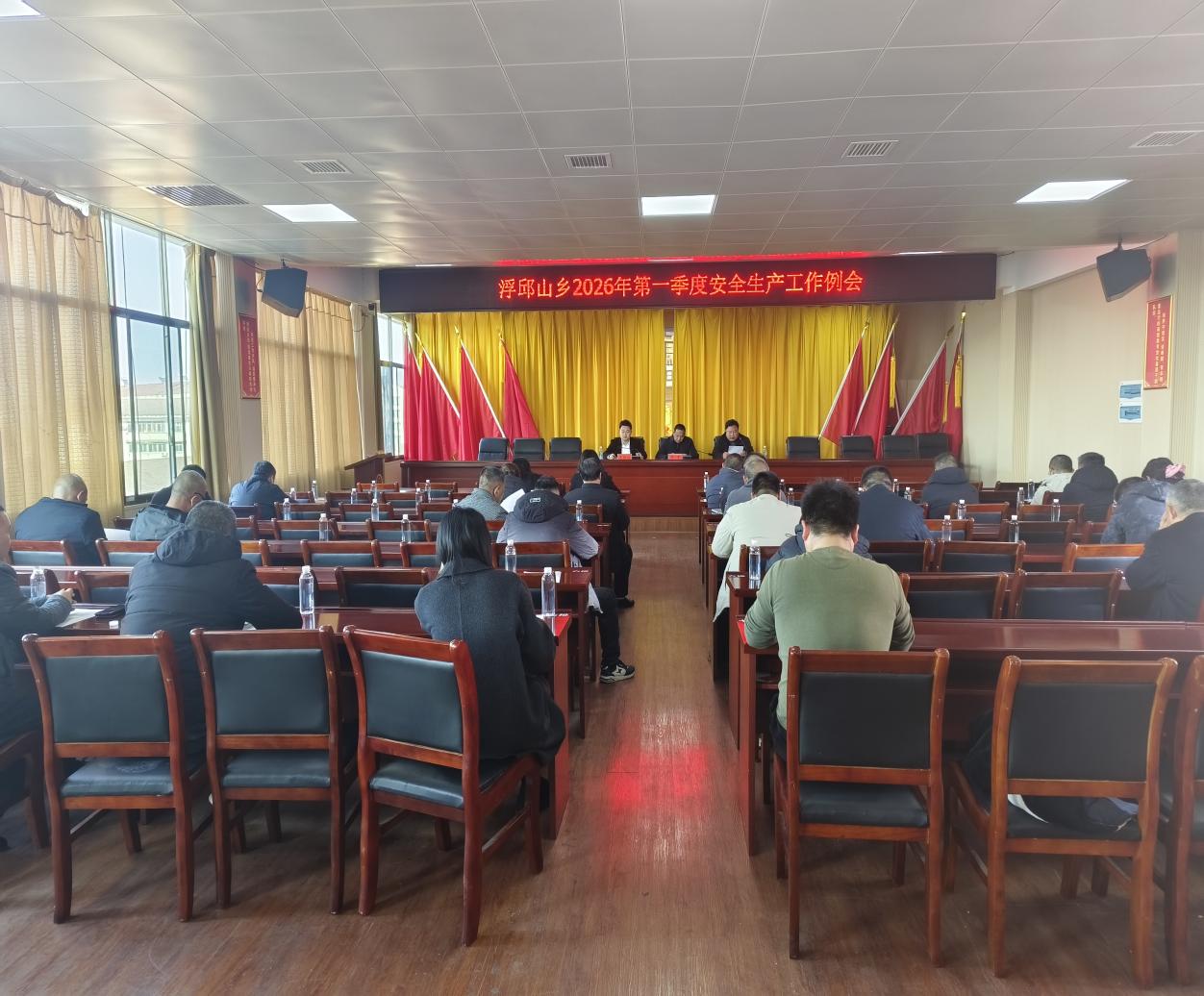 1月8日下午,浮邱山乡政府组织有关部门及辖区各企业负责人召开2026年第一次安全生产工作例会。