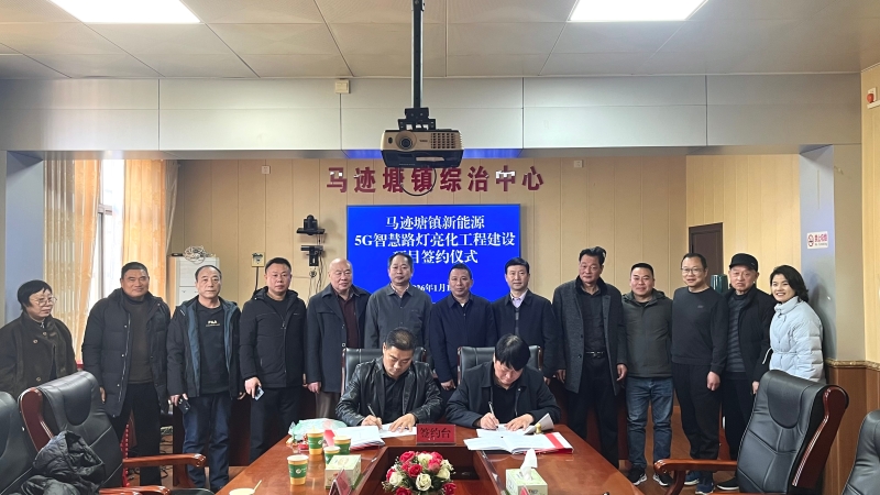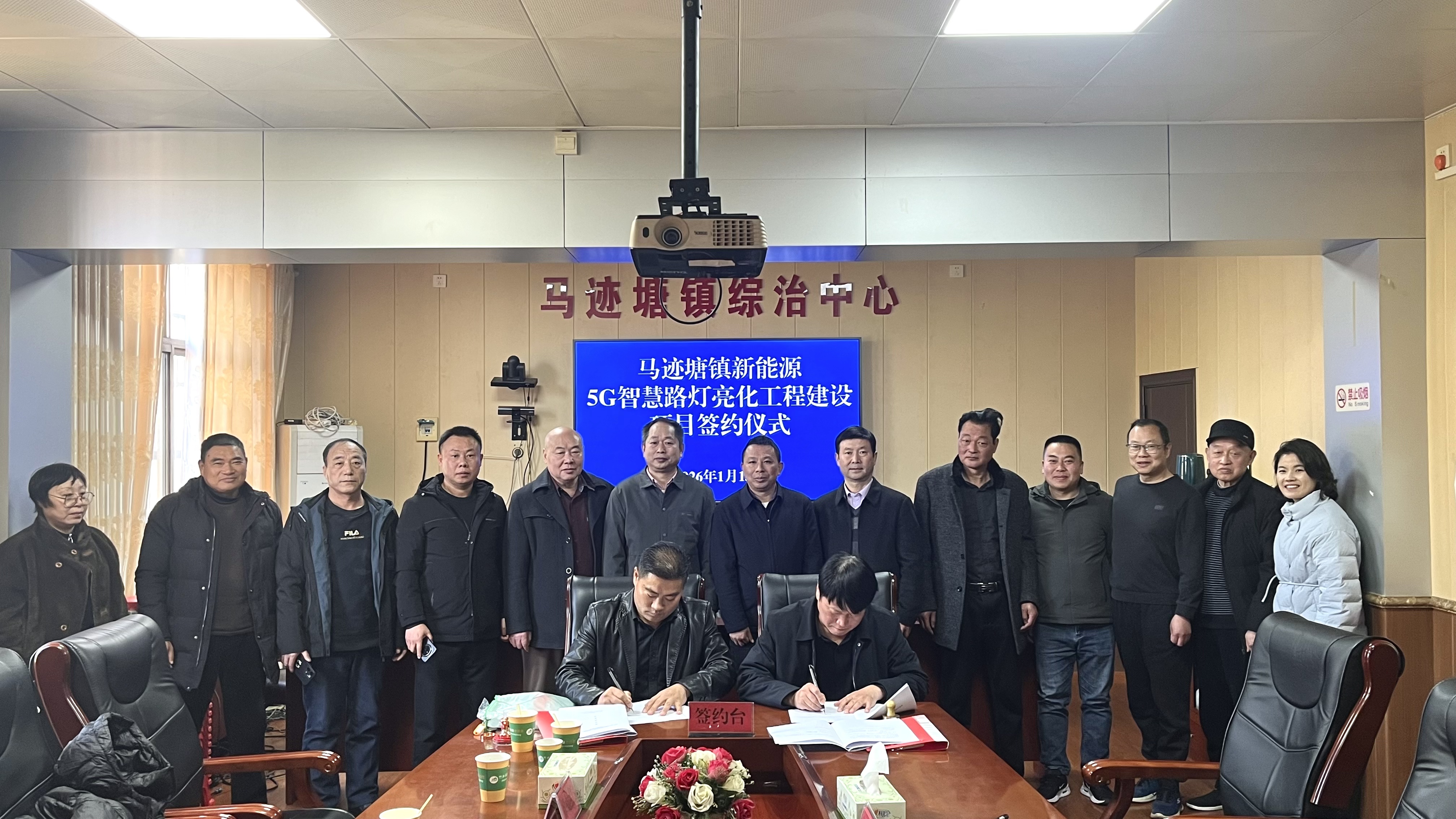 1月13日上午,马迹塘镇人民政府与广东福瑞盛达新能源科技有限公司签订新能源5G智慧路灯亮化工程建设项目投资合同。
