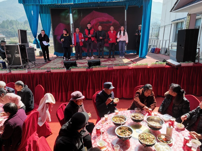 联谊会还特别安排了关爱环节,为村上118名70岁以上老人及残疾人发放过年物资。