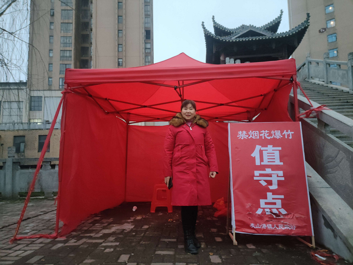 灰山港镇环保协会志愿者开展禁烟花爆竹文明劝导