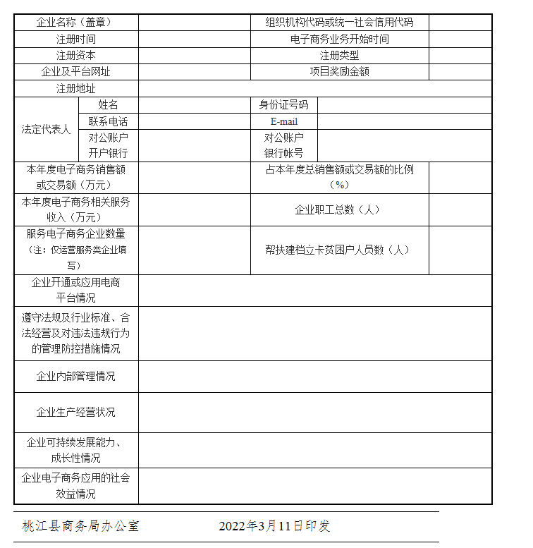 根据《关于构建“亲”“清”新型政商关系的八条措施的通知》(桃发〔2019〕1号)文件相关要求,推动我县中小微企业与电商企业“抱团”发展,充分利用电商平台拓展产品上行渠道,现就组织申报2021年桃江县电子商务企业奖励资金项目的有关事项通知如下: