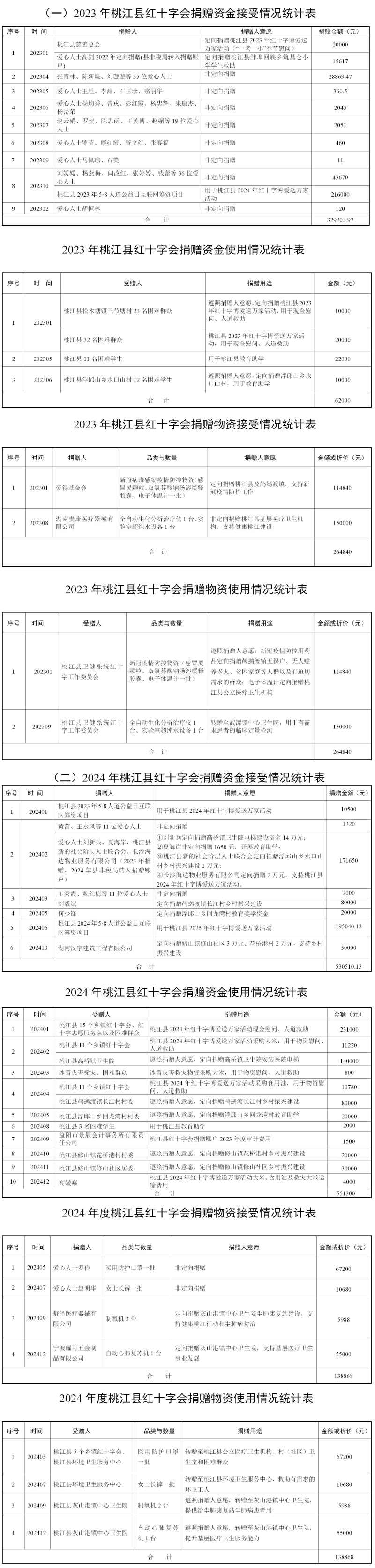 桃江县红十字会2023-2024年捐赠款物接受与使用情况公示