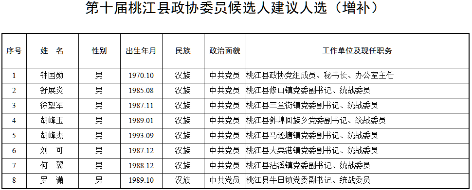 第十届桃江县政协委员候选人建议人选(增补)公示