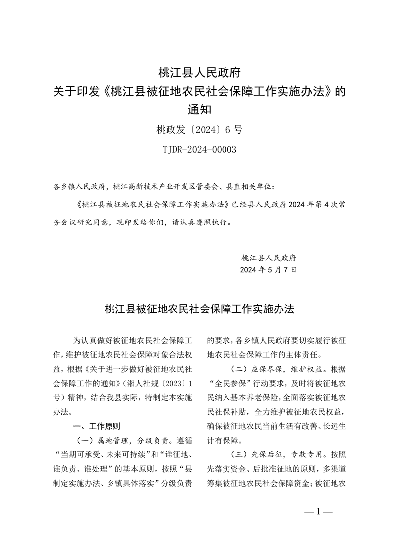 桃江县人民政府关于印发《桃江县被征地农民社会保障工作实施办法》的通知
