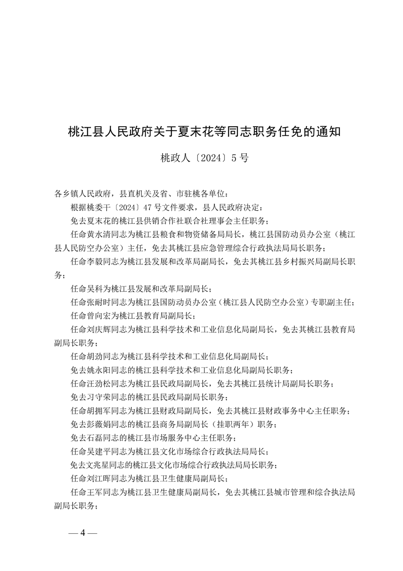 桃江县人民政府关于夏末花等同志职务任免的通知