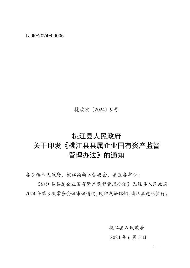 桃江县人民政府关于印发《桃江县县属企业国有资产监督管理办法》的通知