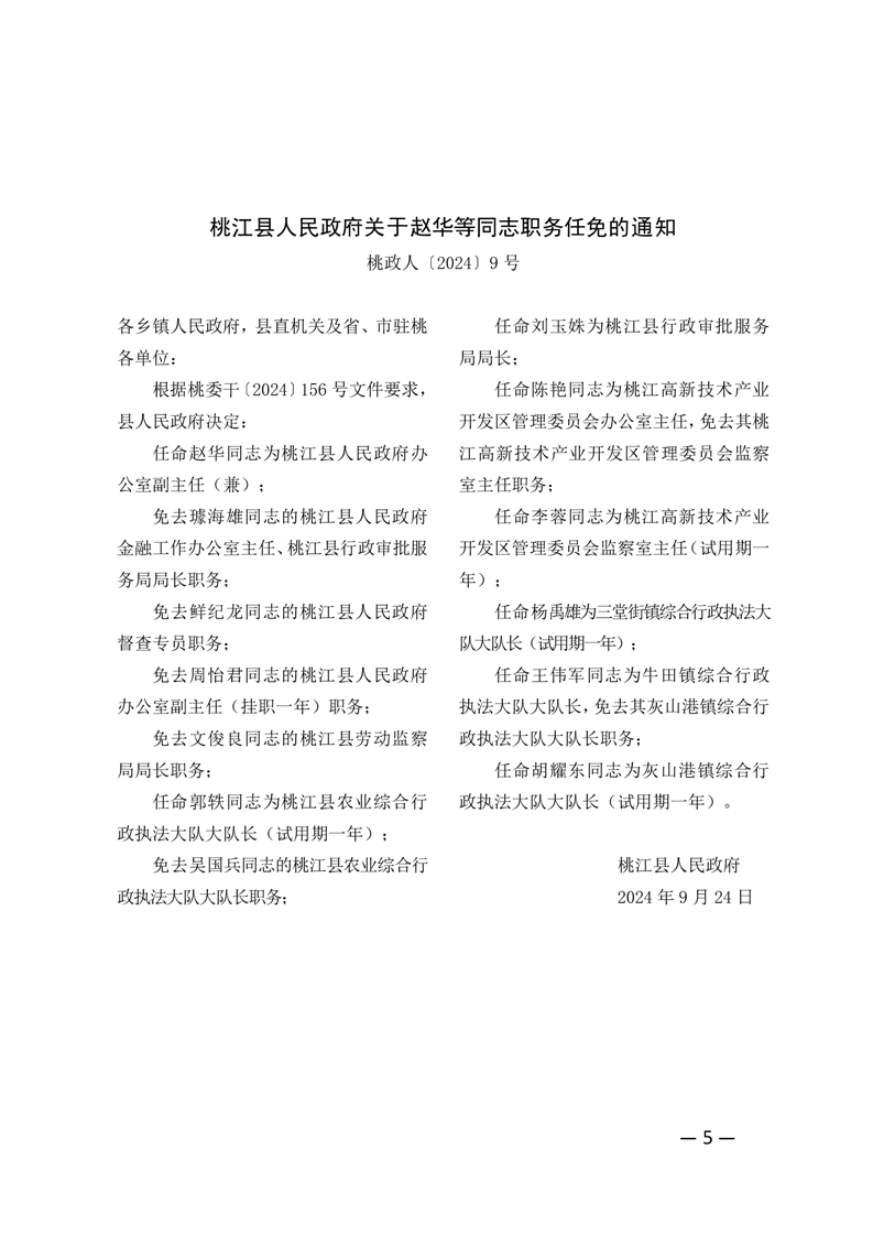 桃江县人民政府关于赵华等同志职务任免的通知