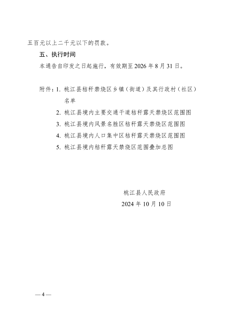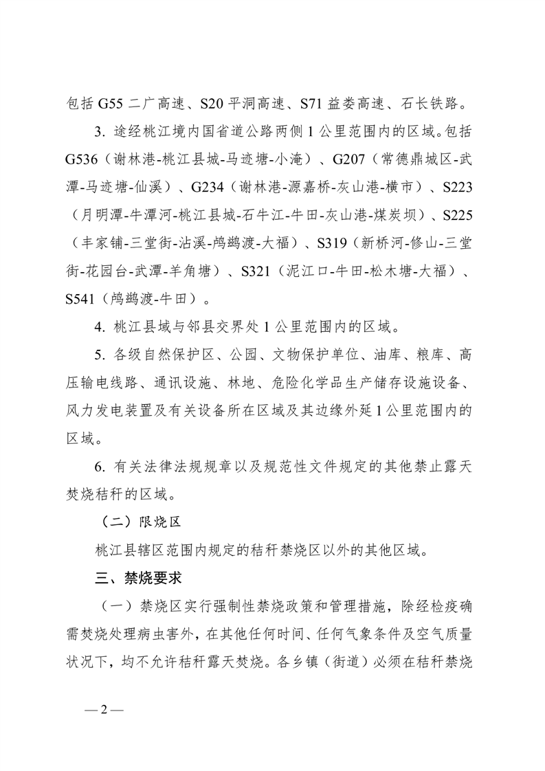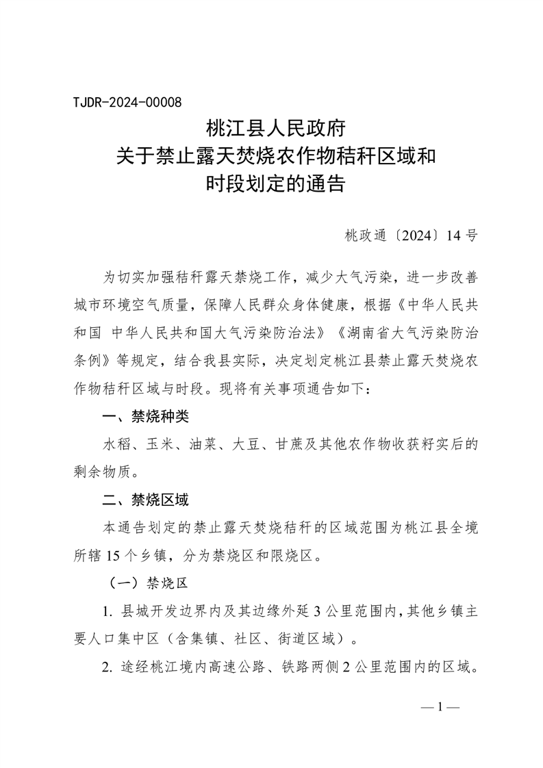 桃江县人民政府关于禁止露天焚烧农作物秸秆区域和时段划定的通告