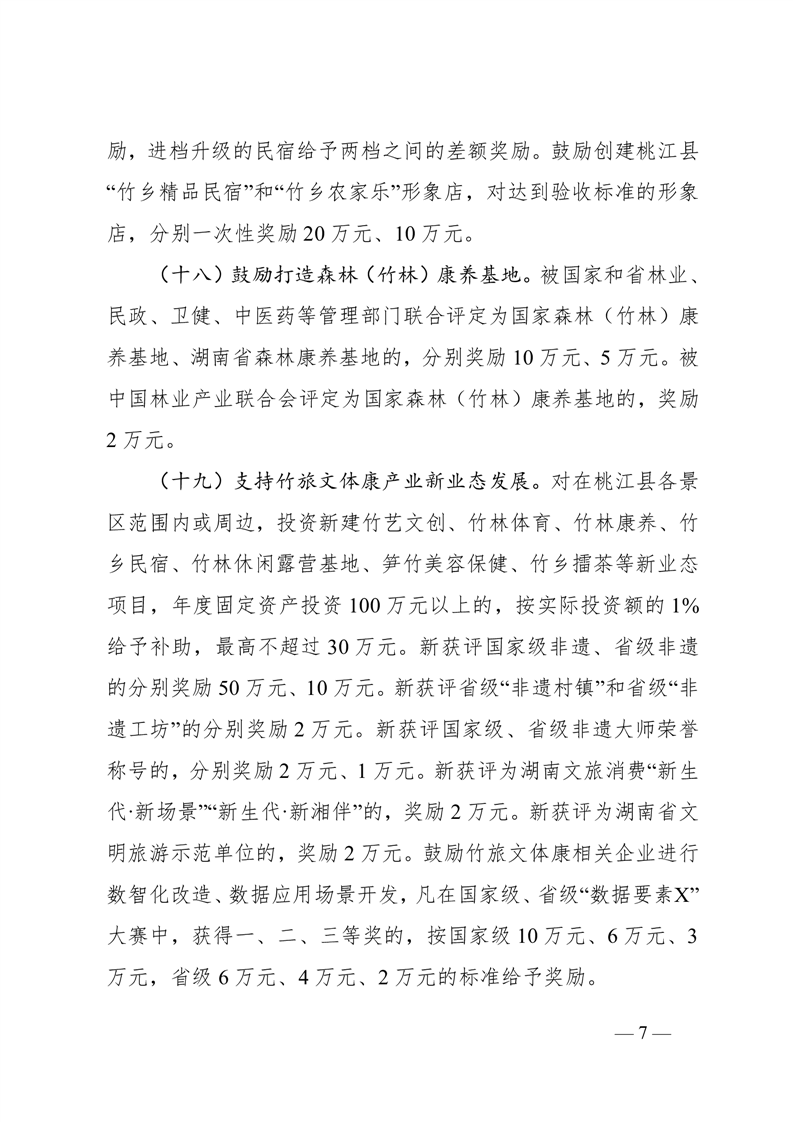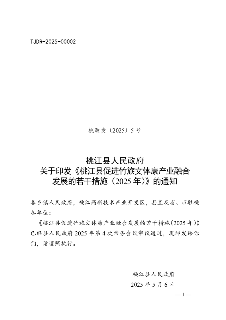 桃江县人民政府关于印发《桃江县促进竹旅文体康产业融合发展的若干措施(2025年)》的通知