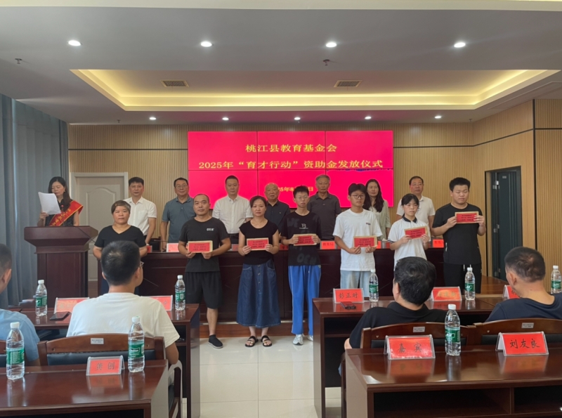 8月26日上午,桃江县教育基金会2025年资助困难家庭学生助学金发放仪式在县教师发展中心举行。县人大常委会副主任黄平、副县长庄立辉、县政协副主席李卓远出席。