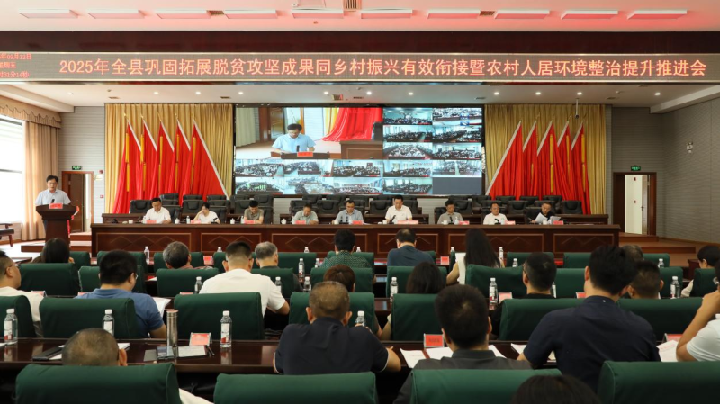 会议组织观看了2025年度上半年度人居环境整治工作暗访视频。会议听取了巩固拓展脱贫攻坚成果同乡村振兴有效衔接暨人居环境整治工作主题报告;相关单位就巩固拓展脱贫攻坚成果同乡村振兴有效衔接工作及人居环境整治工作作表态发言。