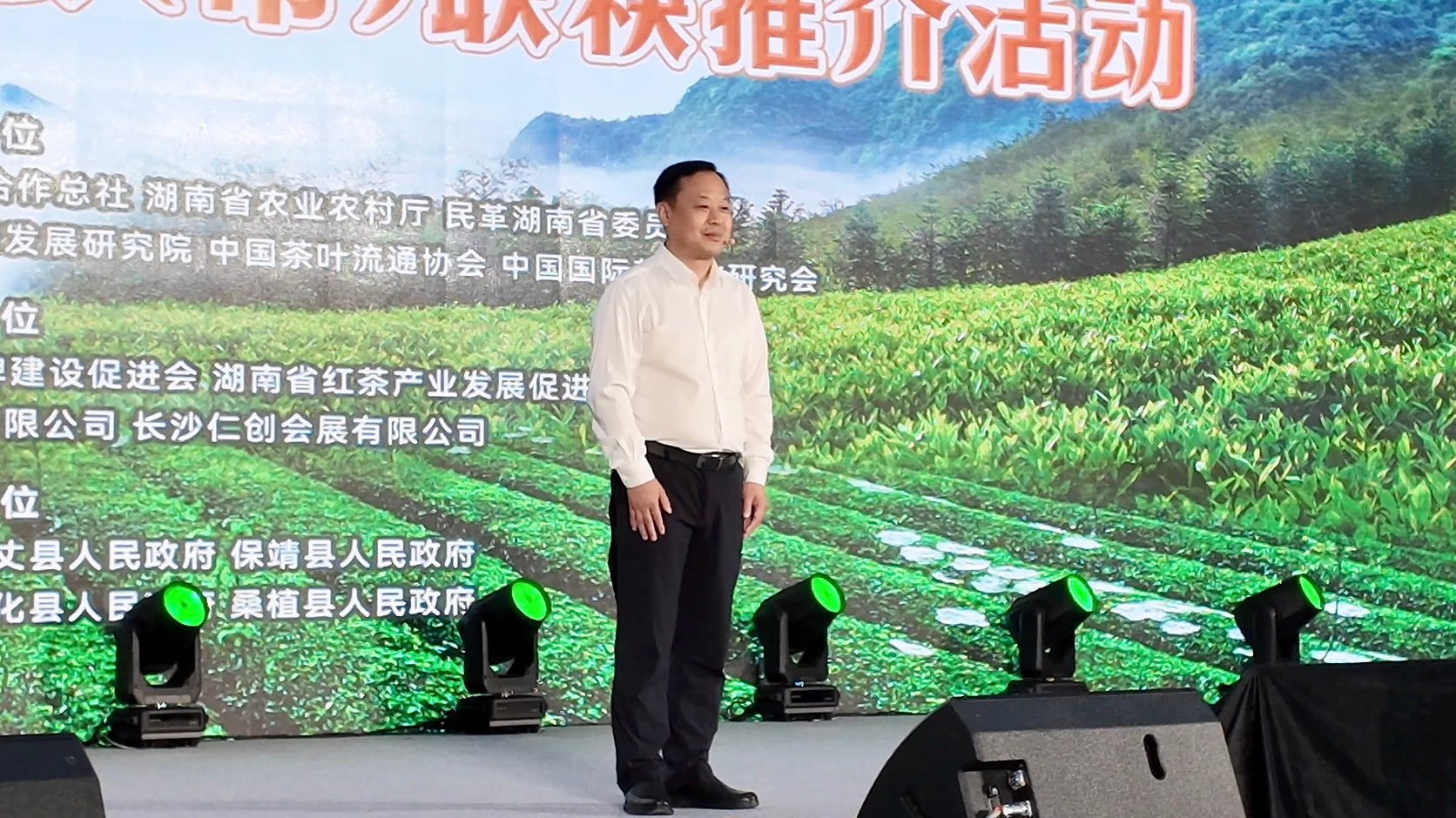 9月19日,2025第十七届湖南茶业博览会开幕式暨茶产业特色优势重点县(市)联袂推介活动在湖南国际会展中心举行。活动上,桃江获评2025湖南茶叶高质量发展十强县(市),副县长符赛龙作为桃江茶业推荐官出席活动并进行现场推介。