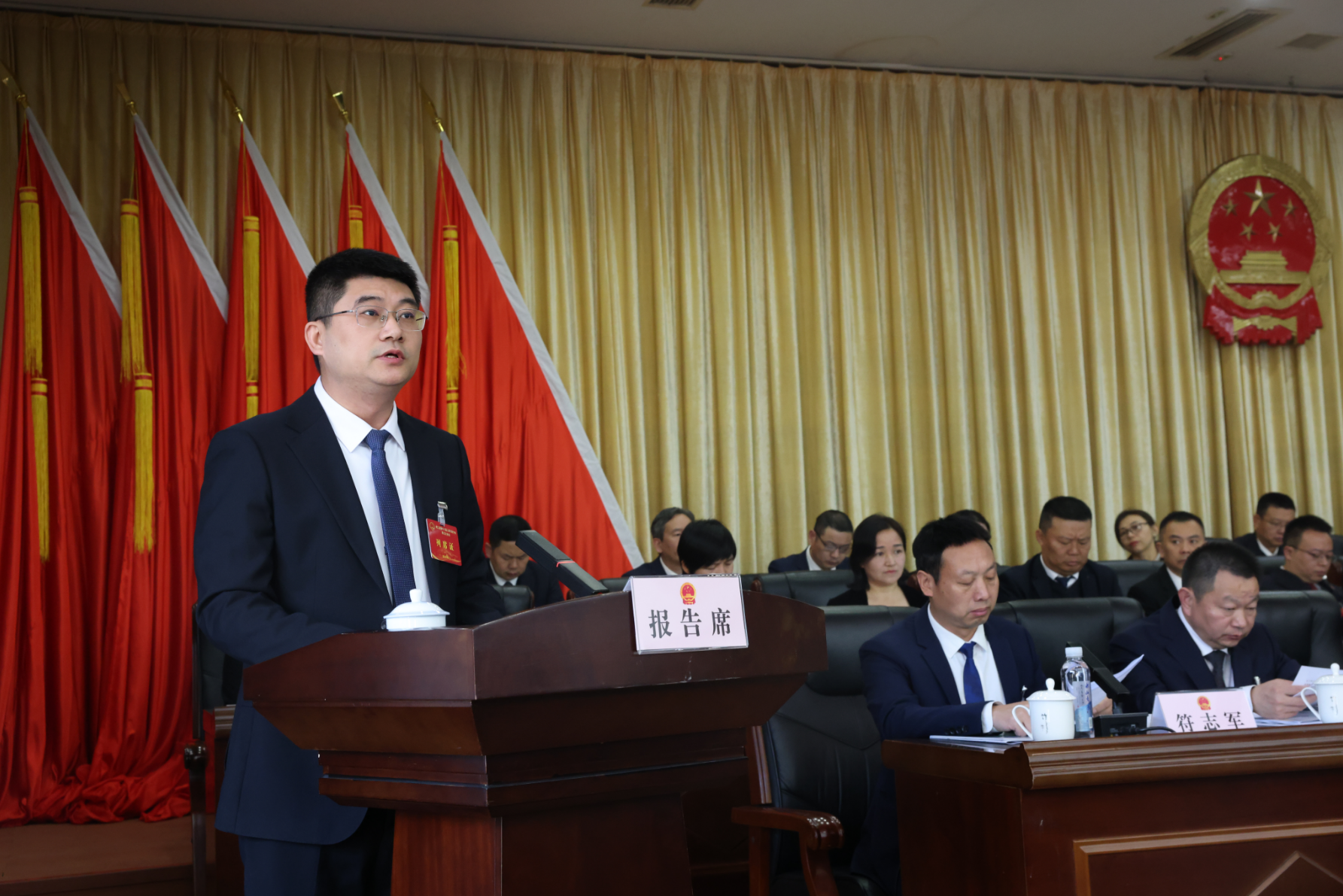 县委副书记、代理县长沈澍作政府工作报告 张红莉 摄