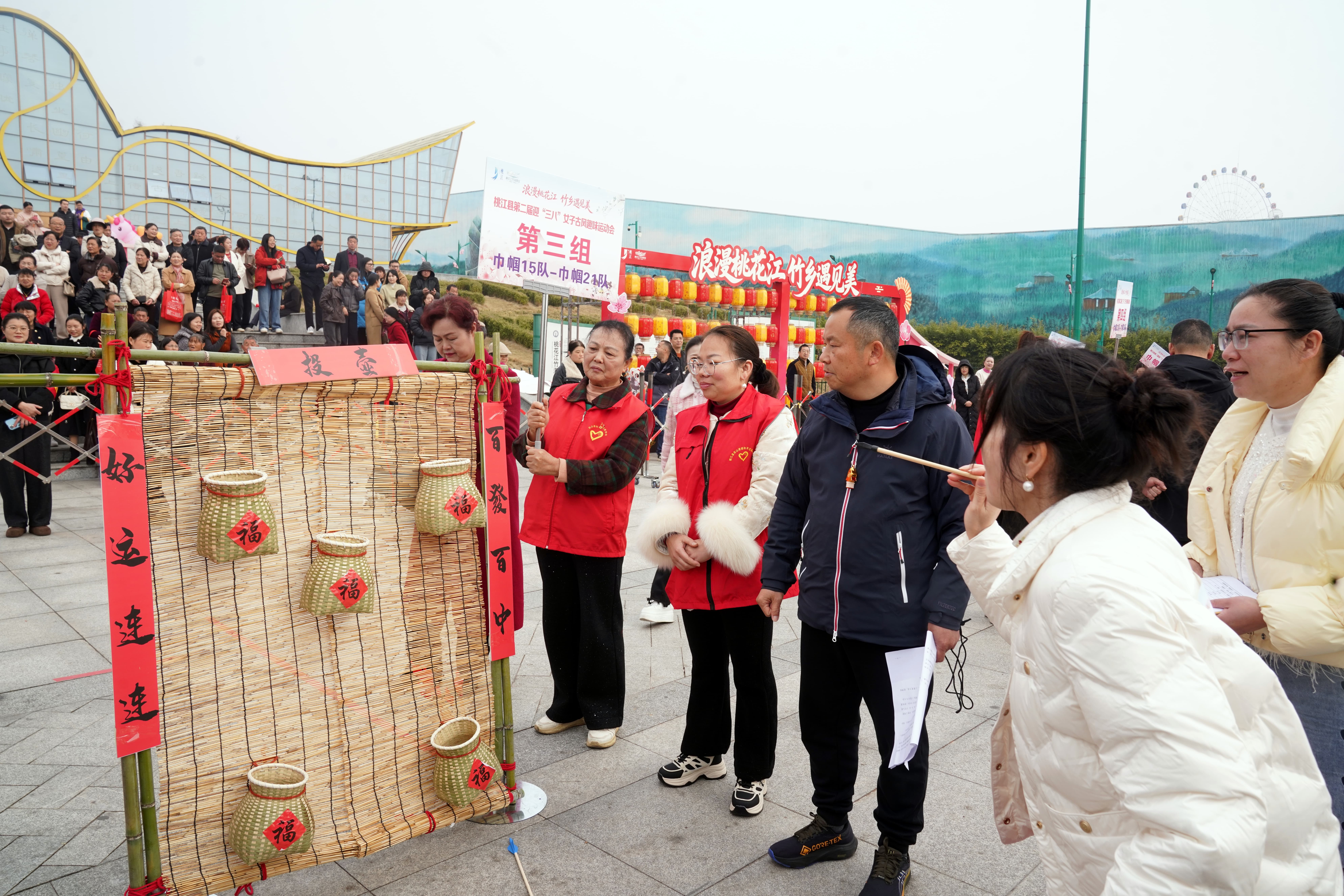 投壶赛场雅致有序,选手们凝神静气、稳握箭矢,精准瞄准、从容投掷,一道道优美弧线凌空而过,每一次入壶都引来阵阵欢呼;蹴鞠场上活力满满,队员们脚步灵动,瞄准得分区精准投射,趣味与技巧兼具;“齐心协力”赛道上,队员们步调一致,喊着整齐口号稳步向前,展现出超强的团队凝聚力。压轴登场的拔河比赛将全场气氛推向最高潮,选手们紧握长绳、重心下沉,绳索来回拉锯、悬念拉满,呐喊声、加油声、欢笑声响彻竹海,场面热烈非凡。整场赛事既比拼技艺,更彰显团结协作、奋勇争先的精神,充分展现了桃江女性昂扬向上、坚韧奋进的良好风貌。