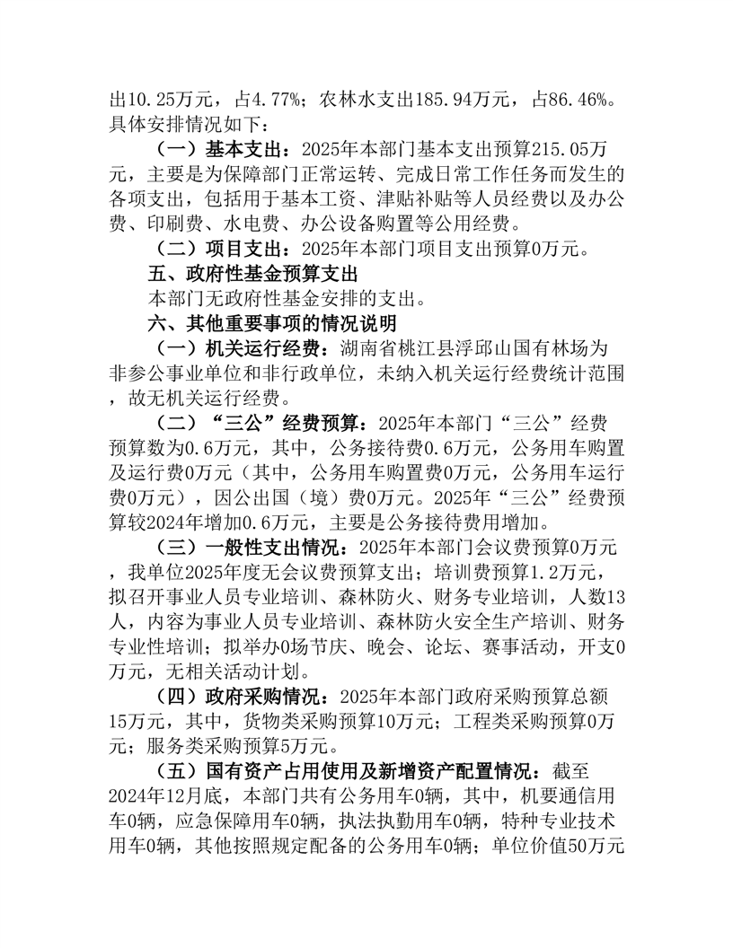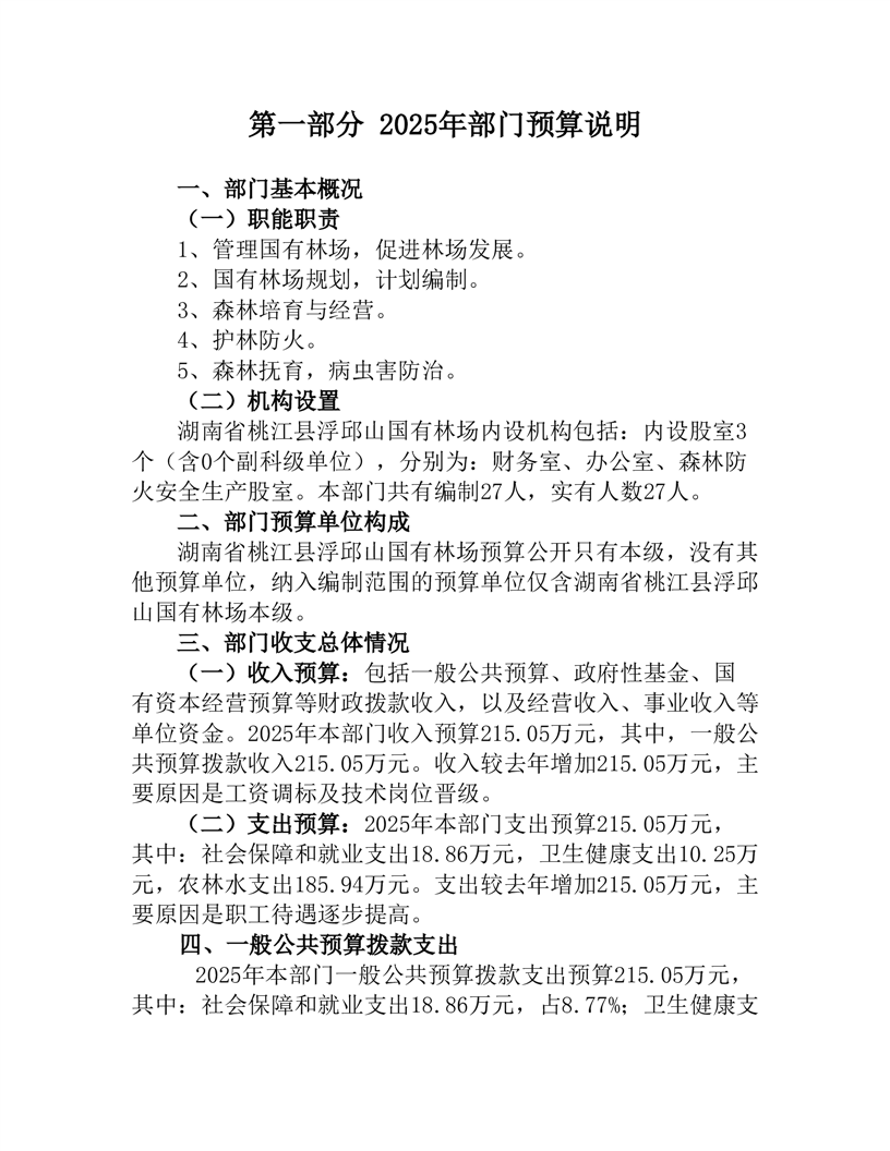 2025年度湖南省桃江县浮邱山国有林场部门预算公开说明