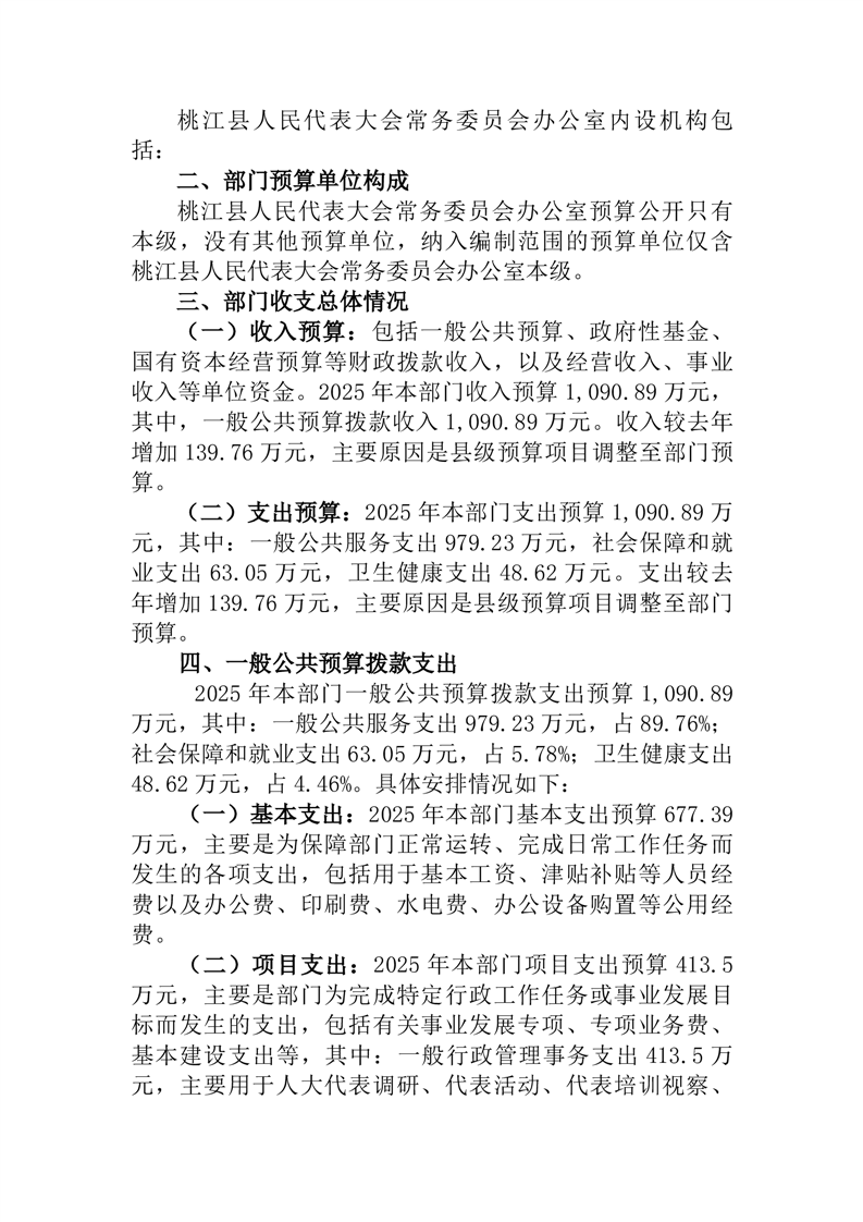 2025年度桃江县人民代表大会常务委员会办公室部门预算公开说明