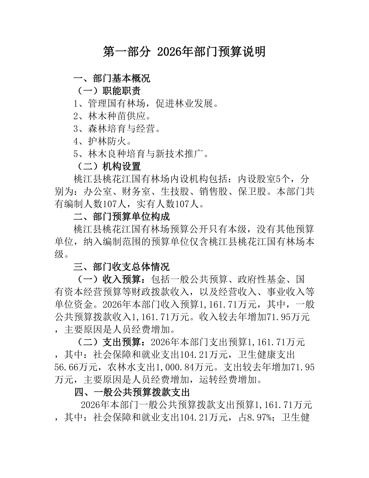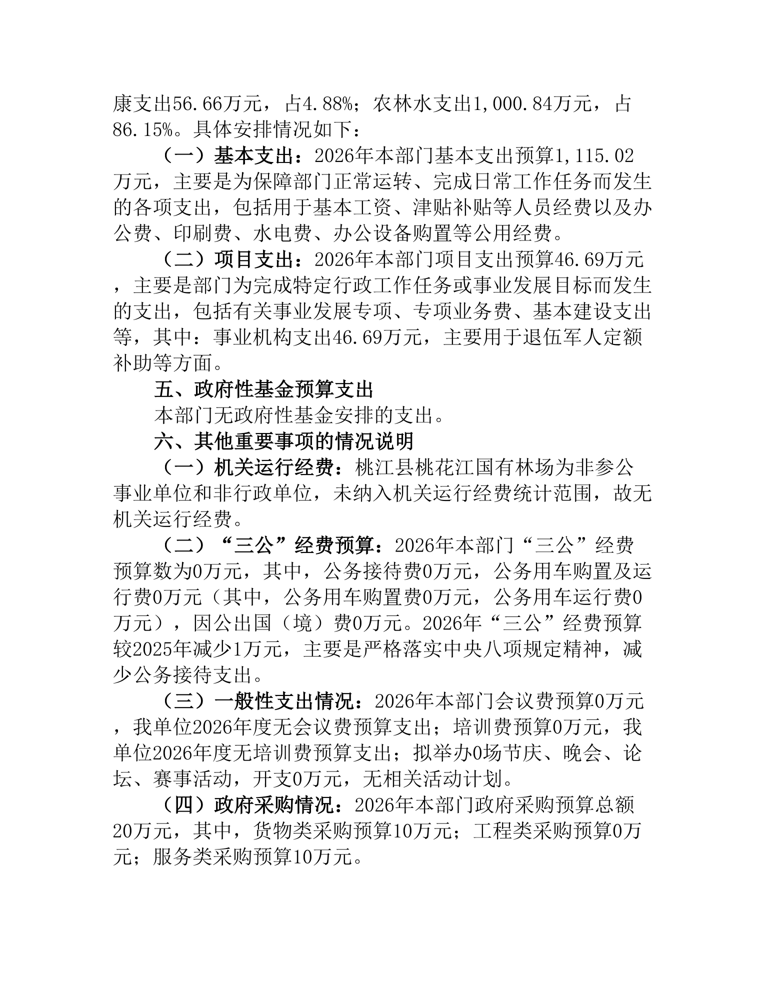 2026年度桃江县桃花江国有林场部门预算公开说明