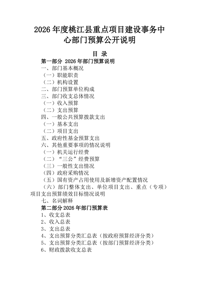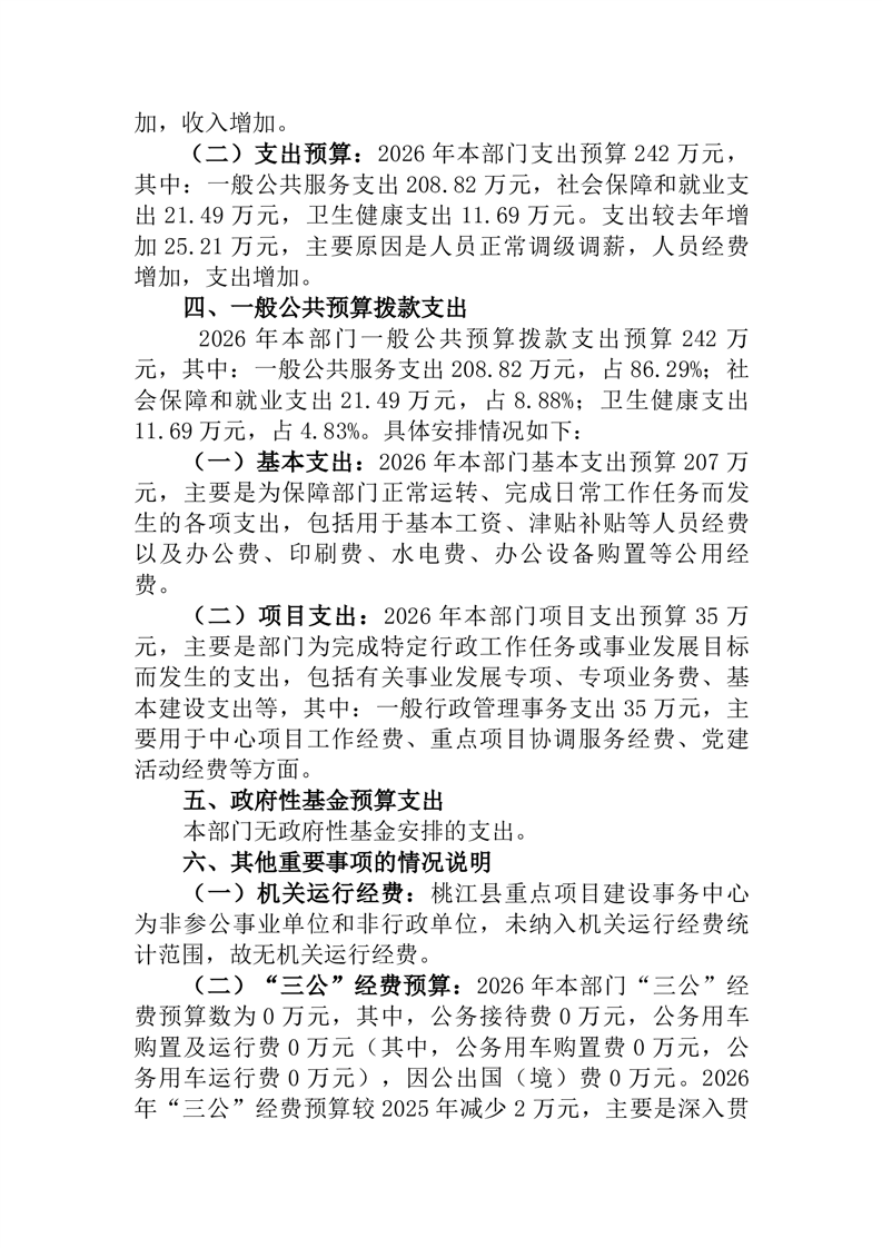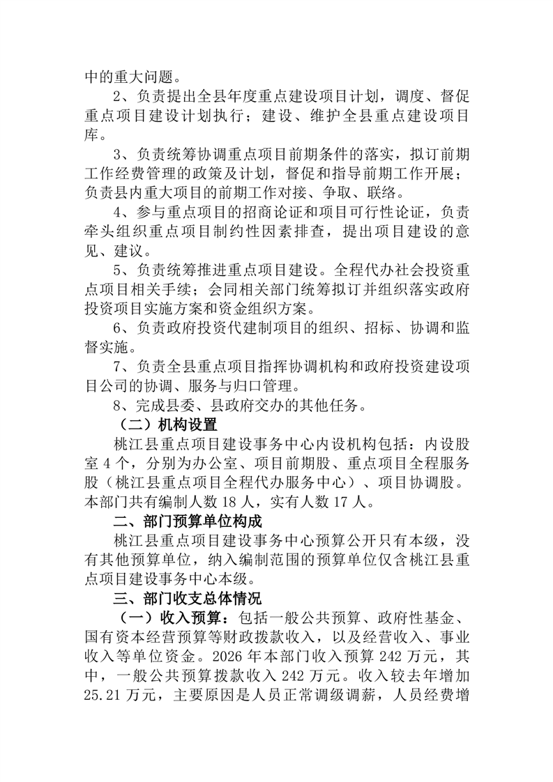 2026年度桃江县重点项目建设事务中心部门预算公开说明