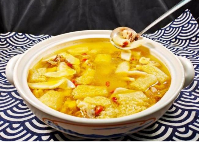 将名贵的“海珍品”鲍鱼和“山珍品”春笋搭配在一起,讲究原汁原味,不仅味道极其鲜美,更是养生补虚的佳品。