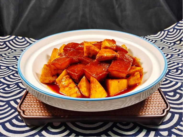 “无竹使人俗,无肉使人瘦;若要不俗与不瘦,餐餐笋烧肉。”红烧笋肉其实创新和传承于东坡肉。传说苏东坡在杭州做官时,组织民工在西湖筑了一道堤,确保了当地农田旱涝保收.为老百姓做了一件好事。为感谢苏东坡,那年春节,当地百姓抬猪担酒给他拜年。苏东坡盛情难却,只好收下将猪肉切成方块,做熟后挨家挨户把肉分送给修堤民工过年。从此老百姓就把苏东坡送来的肉称为“东坡肉”传承至今。笋香红烧肉将肉和竹笋均切成方块,烧得红酥香喷,是一道色香味俱全的美食。酱香怡人的红烧肉配以清香可口的白芽笋,肉质软嫩多汁,入口即化,白芽笋清脆爽口风味独特,咬上一口唇齿留香。