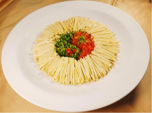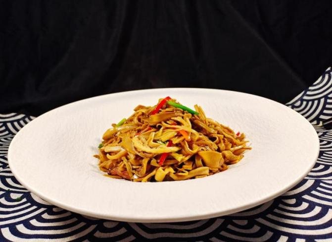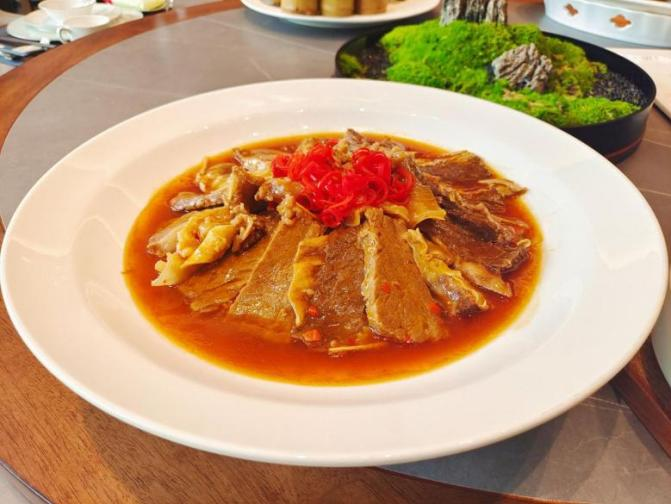 牛一身是“宝”,从牛腩、牛筋、牛肚、牛肺到牛肠,任一切成丝状,然后配炒玉兰片丝,美味爽口。