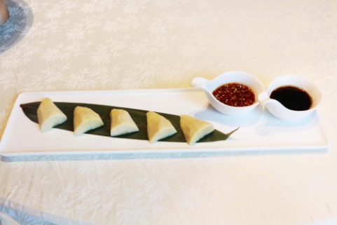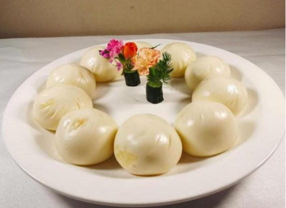 采用春笋、五花肉、姜汁、小葱做馅,包入和好的面中,上笼蒸十分钟,皮薄馅多,汁水饱满、笋香浓厚、口感爽滑。