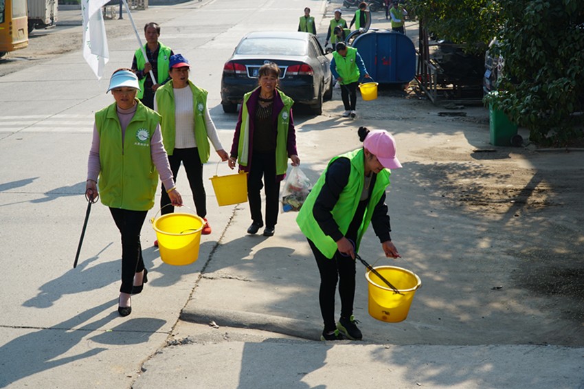 10月21日一早,大栗港镇德茂园村村民就纷纷行动起来,清扫各家庭院、整理住房内务,由60人组成的穿着马甲的志愿者队伍到河边、溪边、路边捡拾垃圾、然后分类放入垃圾桶内。