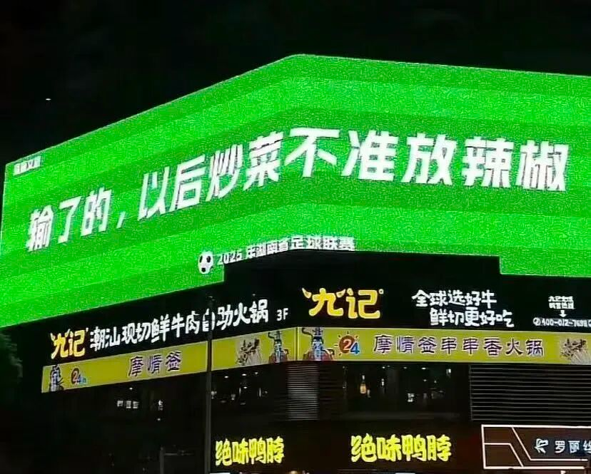 不仅如此,衡阳与株洲的“CP对决”也是“发了狠、忘了情”,一边是把衡阳宣传语“周末不忙,来趟衡阳”改成“周末不忙,拿下衡阳”,戏称衡阳“菜”很出名,一边是在看台竖起“杀‘株’粉”的牌子,还有看热闹不嫌事大的网友更是直呼:“输了的,不准放辣椒!”