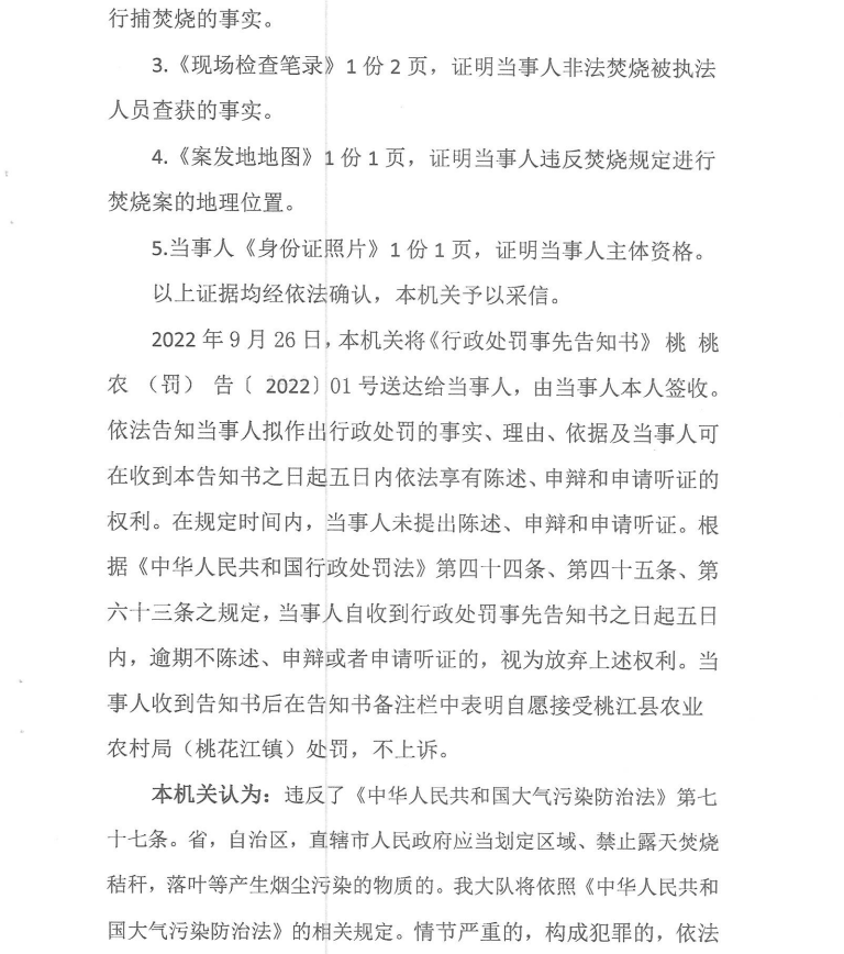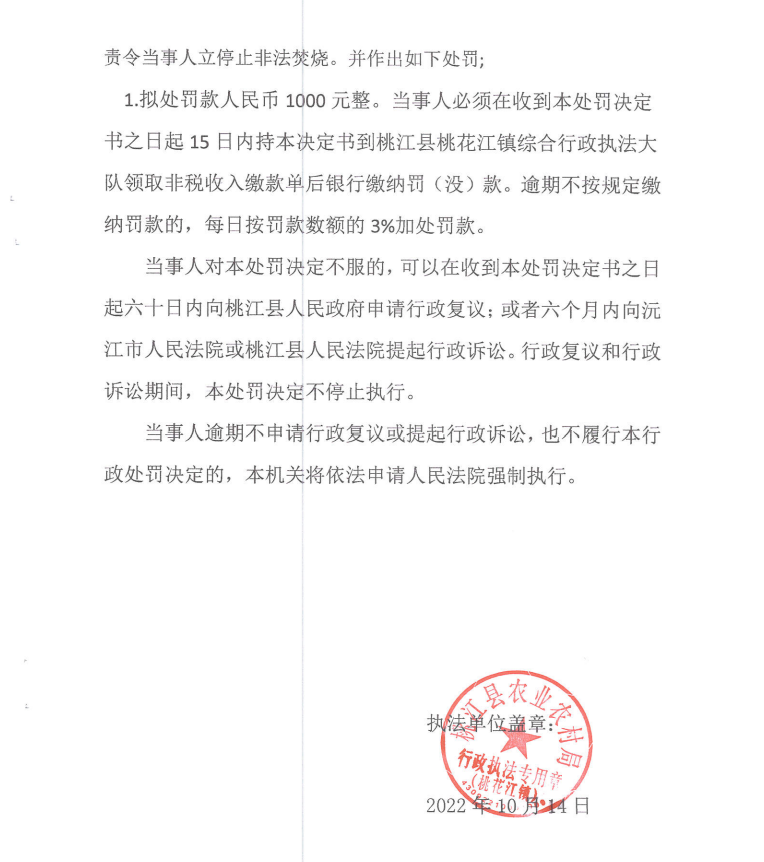行政处罚决定书 桃桃农(农业)罚〔2022〕01号