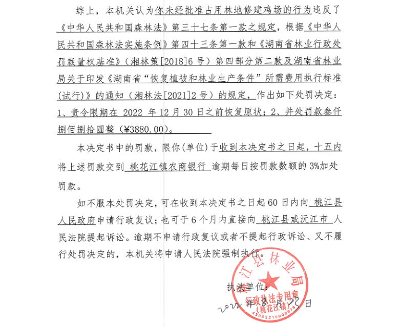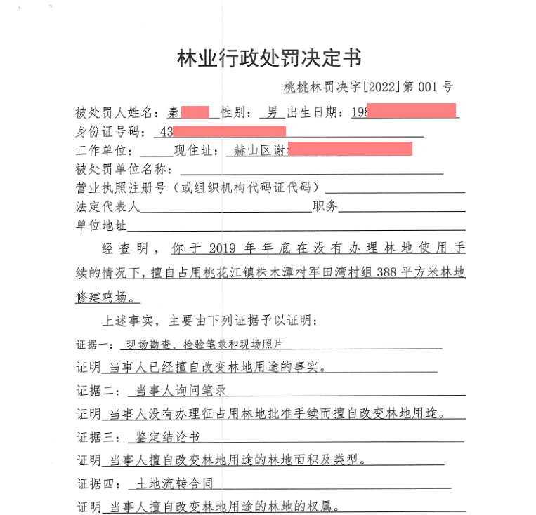 林业行政处罚决定书(桃桃林罚决字〔2022〕第001号)