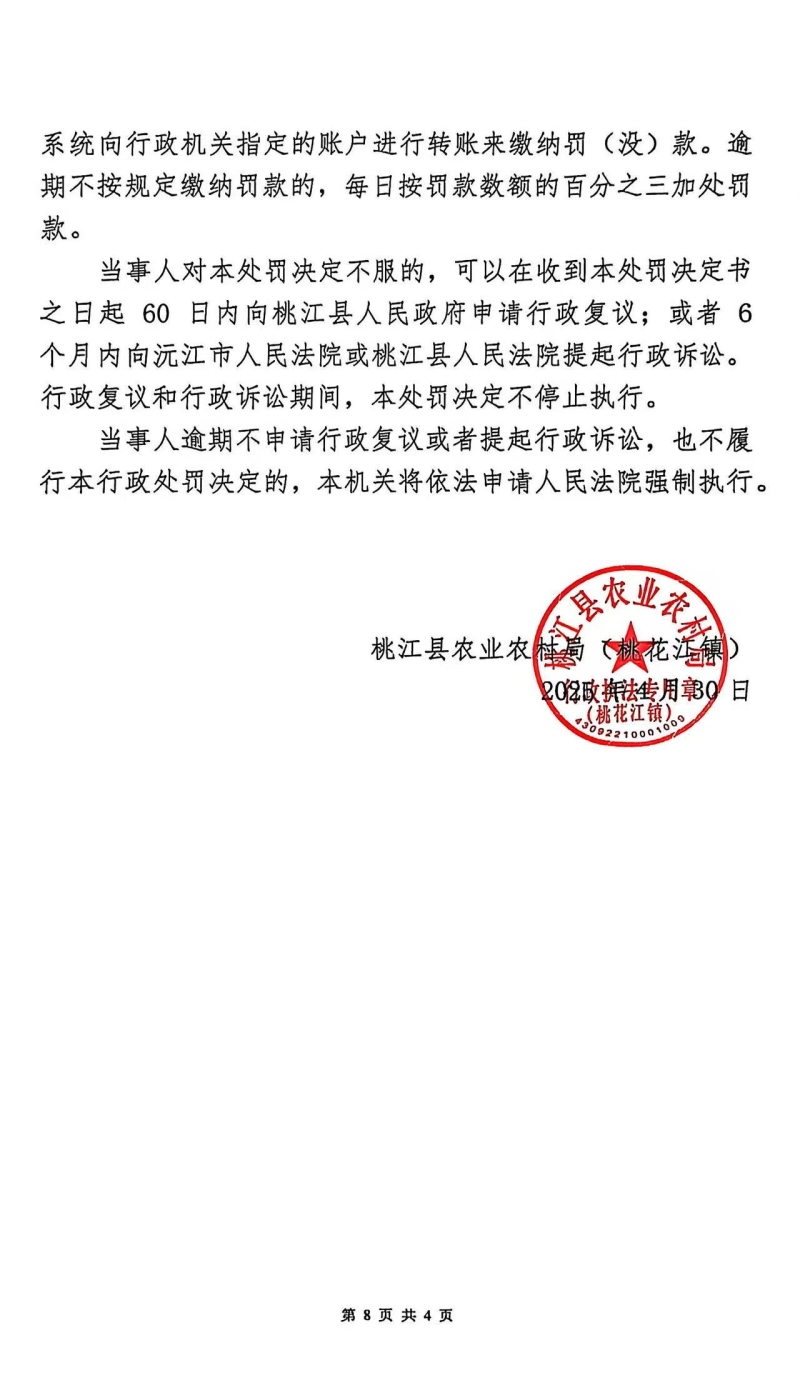 行政处罚决定书 桃农农(渔政)罚〔2025〕06号