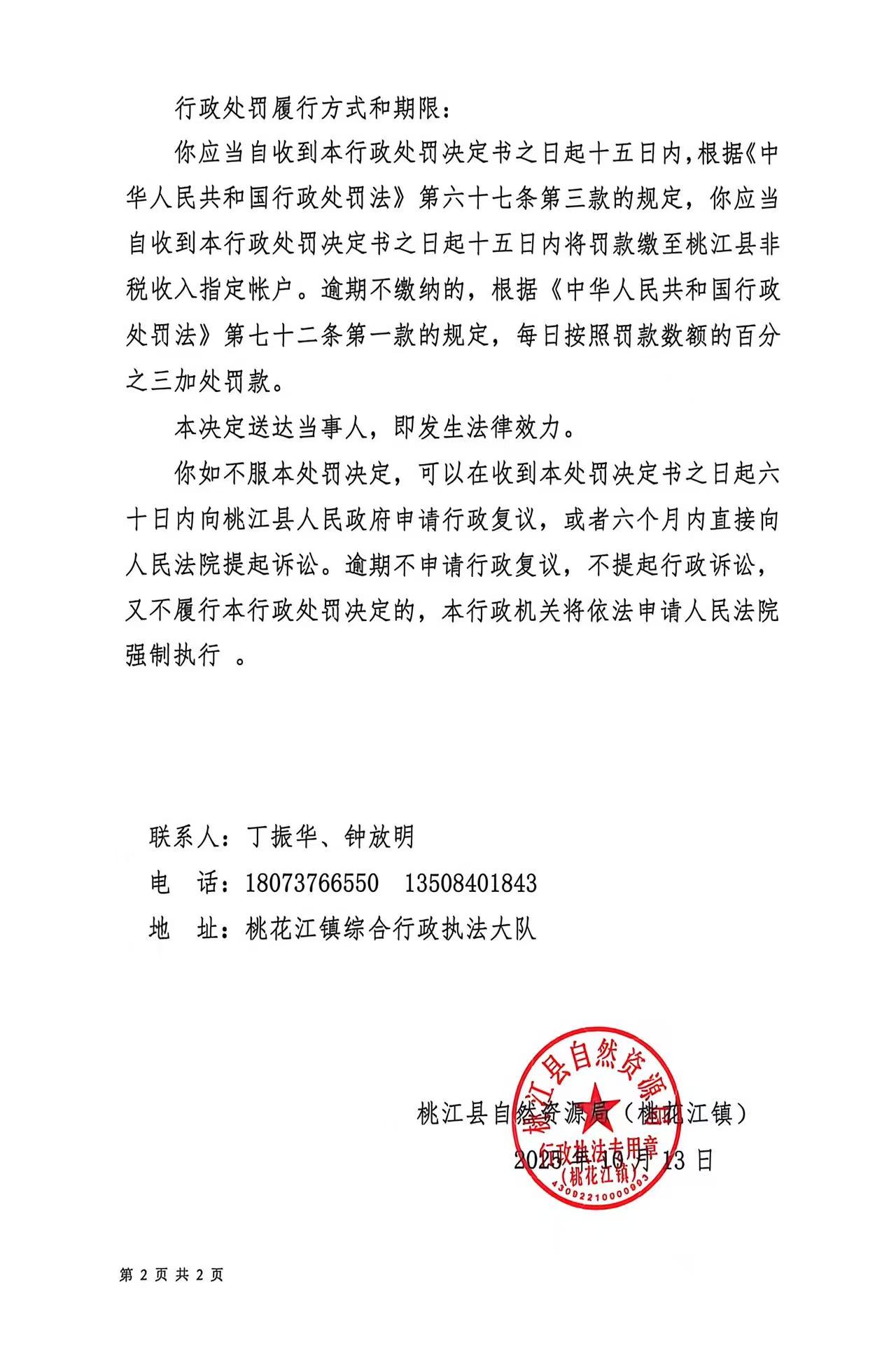 行政处罚决定书 桃桃自资罚决(2025)14号