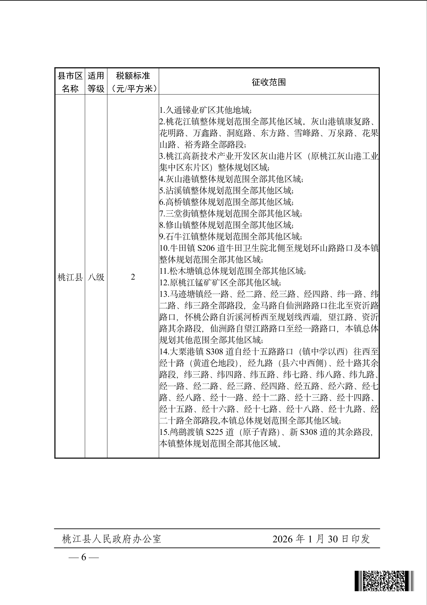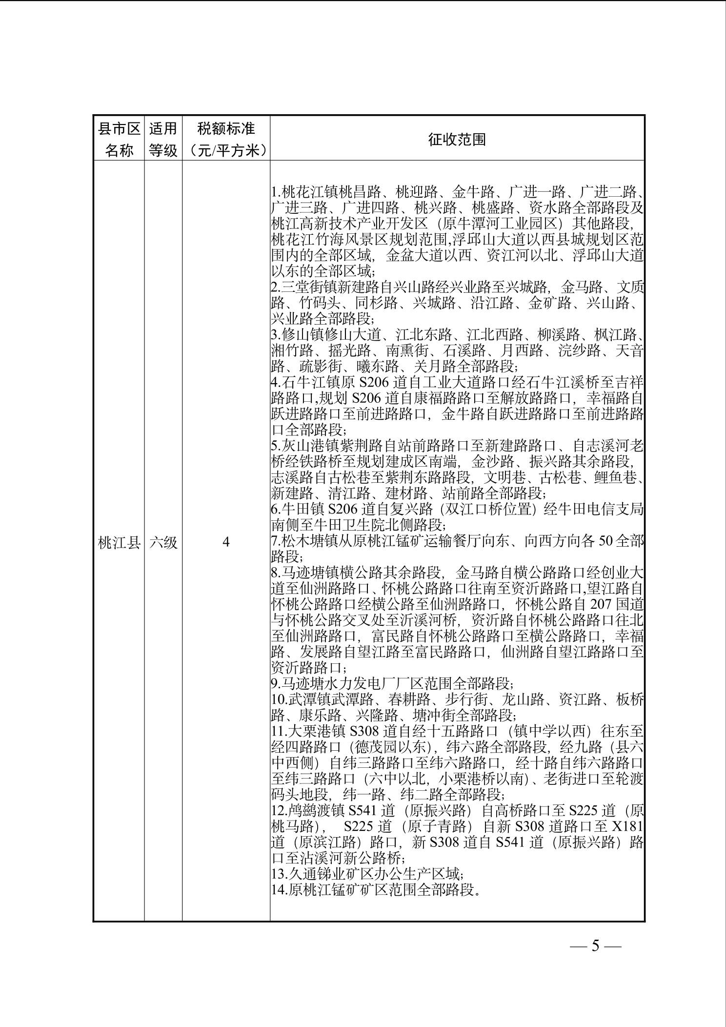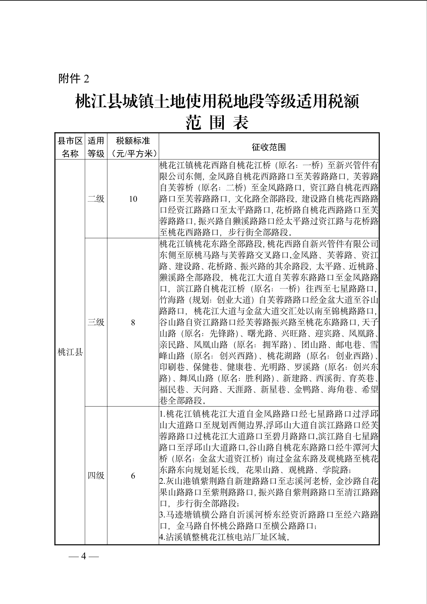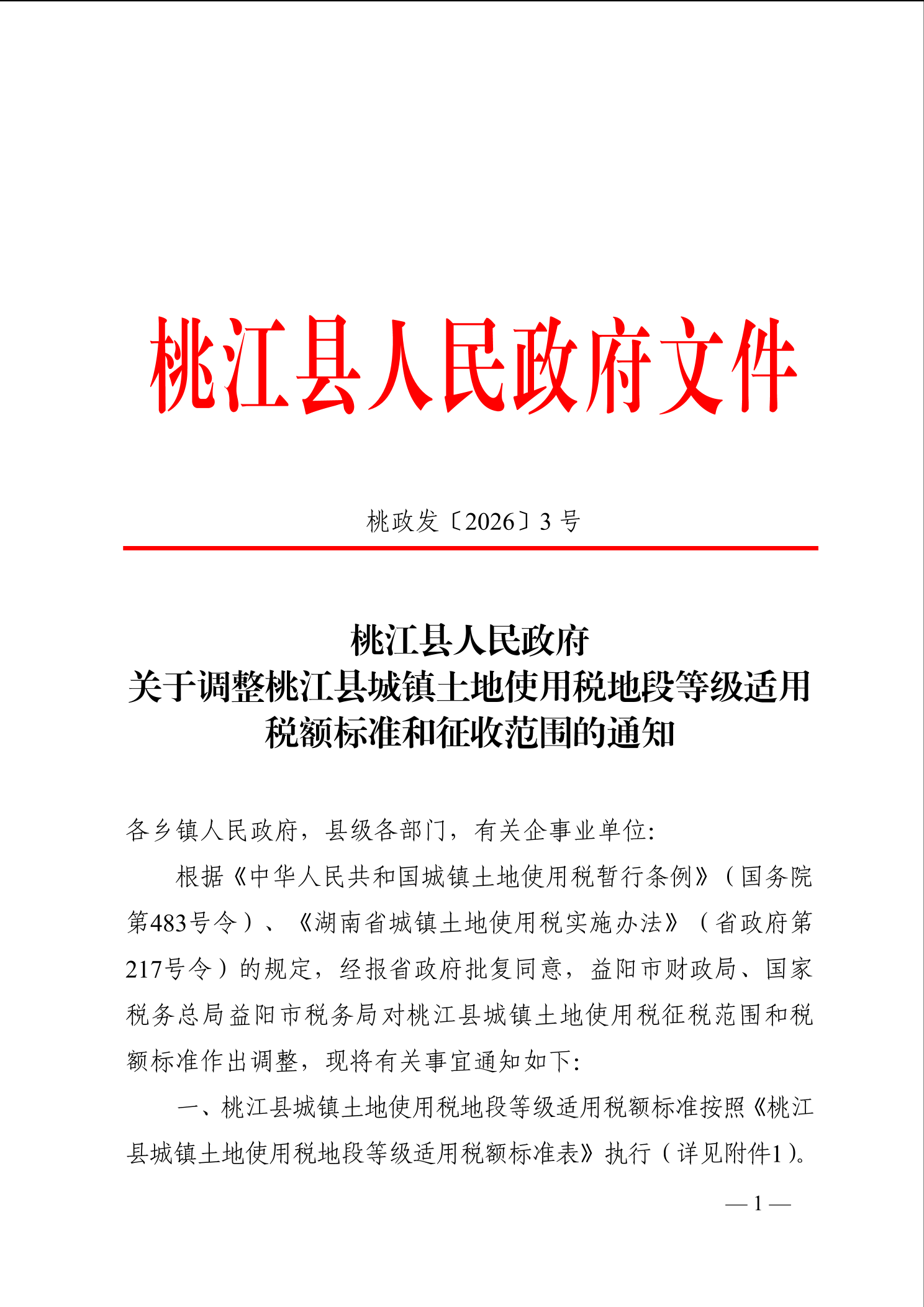 关于调整桃江县城镇土地使用税地段等级适用税额标准和征收范围的通知