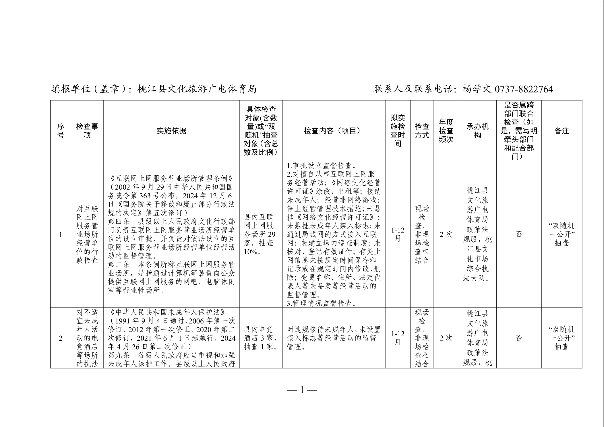 桃江县文化旅游广电体育局2025年度涉企行政检查计划