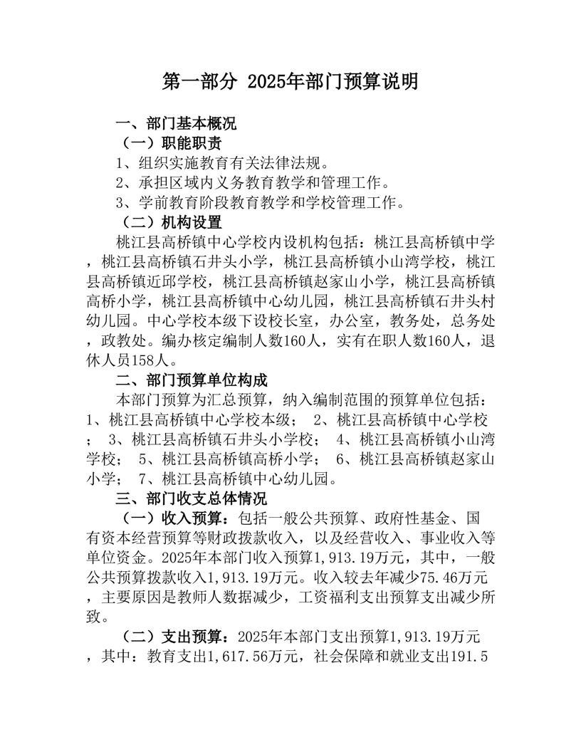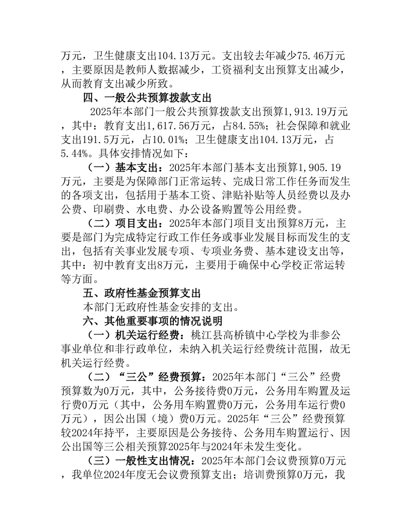 2025年度桃江县高桥镇中心学校部门预算公开