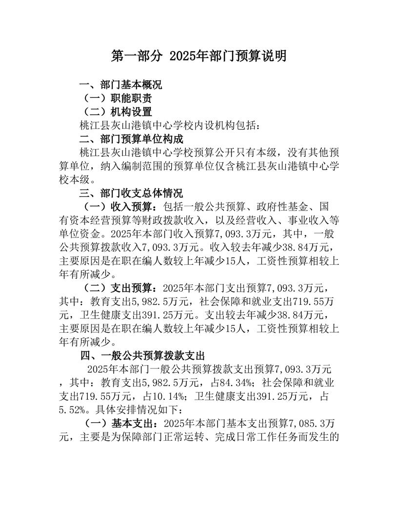 2025年度桃江县灰山港镇中心学校部门预算公开