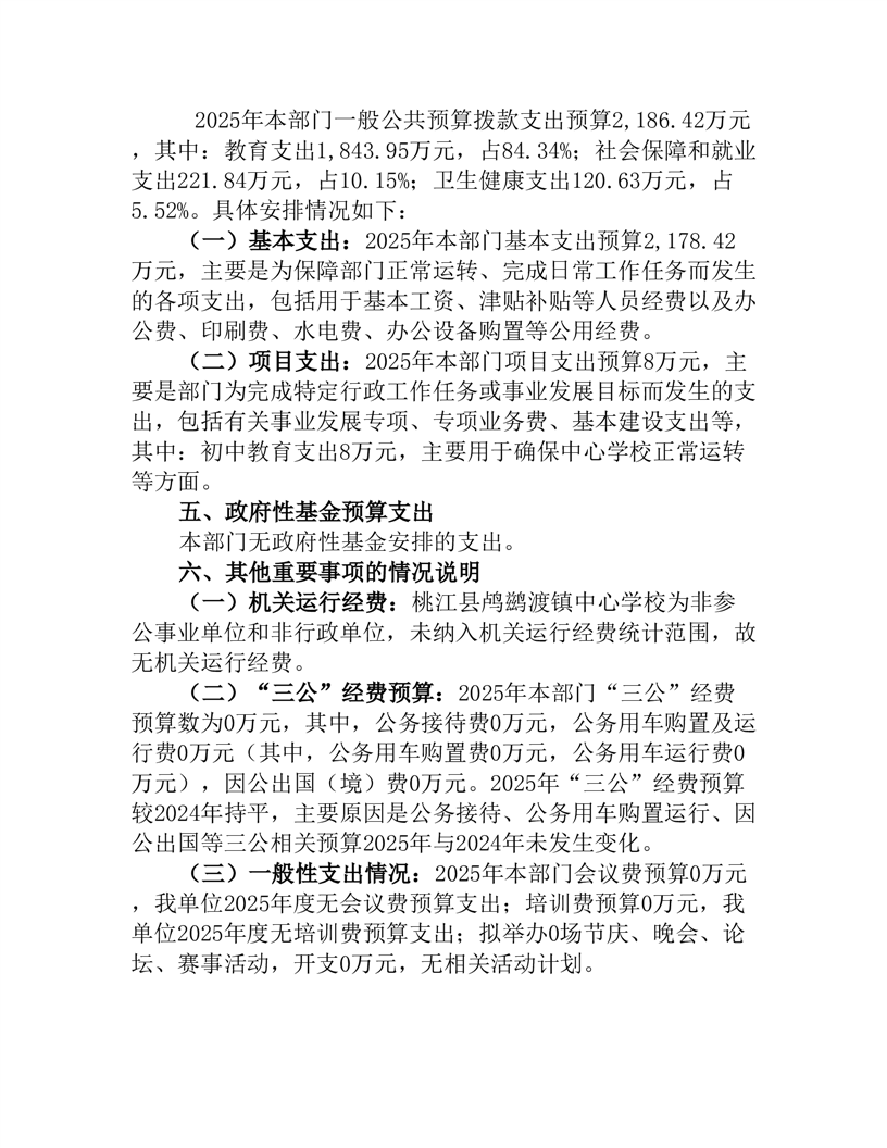 2025年度桃江县鸬鹚渡镇中心学校部门预算公开