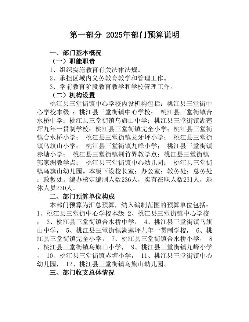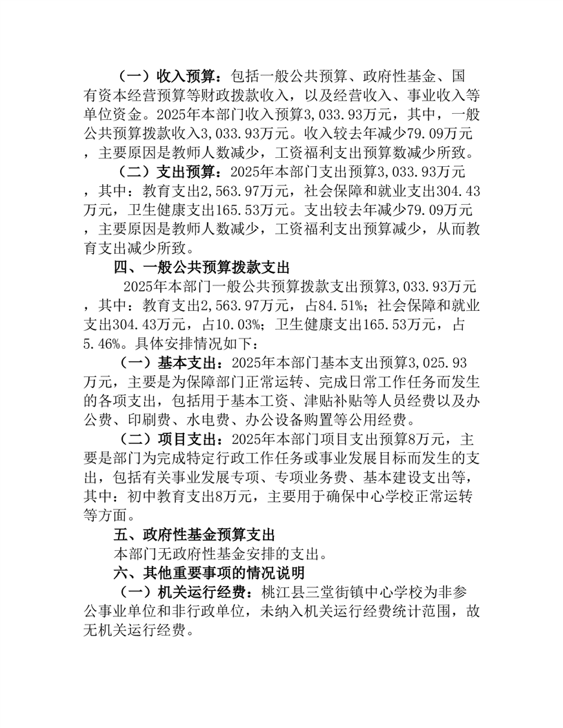 2025年度桃江县三堂街镇中心学校部门预算公开