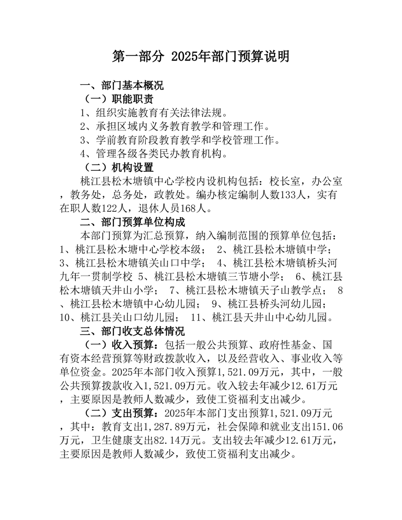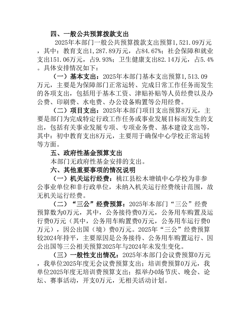 2025年度桃江县松木塘镇中心学校部门预算公开